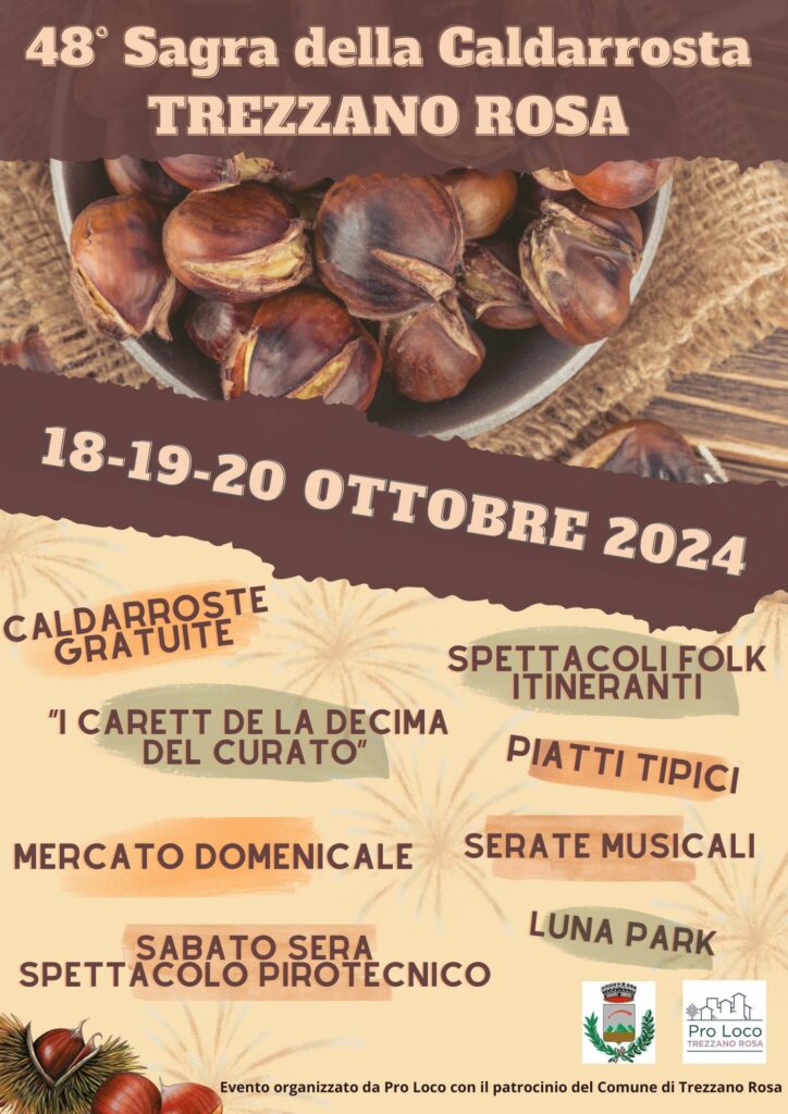 Arriva l’autunno e con esso la Sagra della Caldarrosta, l’appuntamento che colora a festa le vie del centro di Trezzano Rosa e le profuma di piatti tipici. Il 2024 festeggia la 48ª edizione, che si terrà dal 18 al 20 ottobre nella piazza retrostante al Comune, in via Risorgimento angolo via Roma.